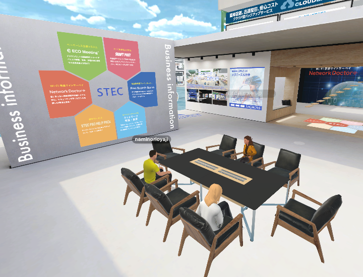 ネットワークのハード、ソフトに強みを持つ企業が集結し、合同でメタバース展示会を開催。音声、テキストチャット機能を活用し、メタバース内での接客、商談を可能にしました。